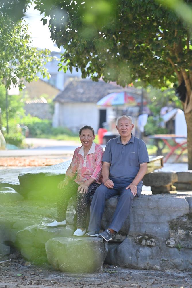 72岁的韦振作和老伴韦凤伞已经相伴走过了49年,一家种有8亩菜地。如今,年事已高的老人不再下地种菜,蔬菜种植产业已交给儿子。韦振作说,这些年觉山村乡村治理得很好,基础设施越来越完善,他每天都会和老伴到村中心小广场大榕树下乘凉,在村道上散步,晚年生活很安逸。
