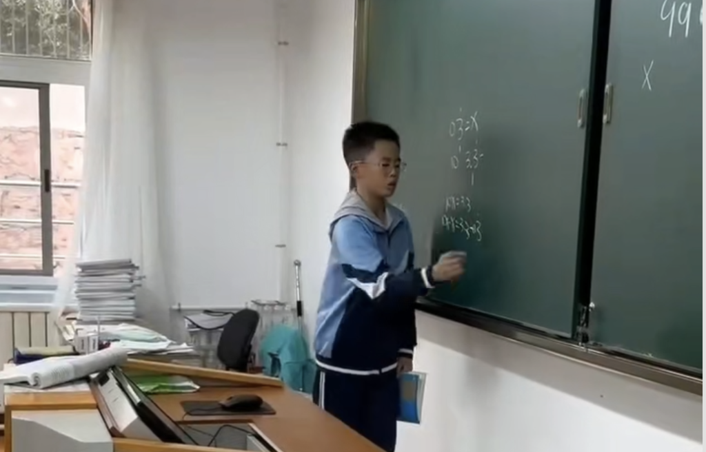 大连软件园双语学校的初中生苏思铭在课堂上解题。新华社发