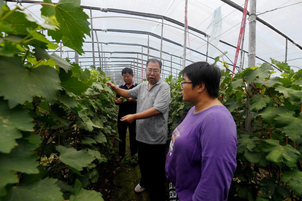 “大棚一旦出现积水,就要及时抽排,以防植株根系被浸泡。”饶阳县农业农村局果树站站长张铁兵在留楚镇胜利村的葡萄大棚里,一边查看葡萄长势,一边为村民讲解汛期管护要点。