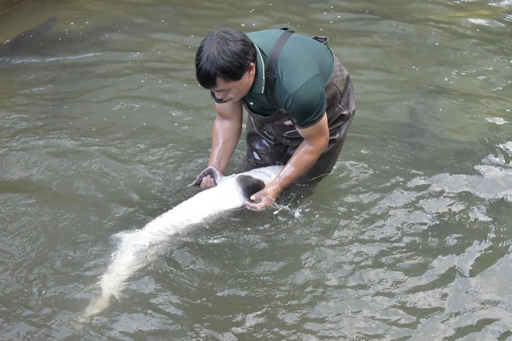 这一年,大学刚毕业的周亮也回到家乡宜宾,协助其父亲经营研究所工作。自1993年至2023年,在父子二人的接力奋斗下,这个民营研究所成功实现长江鲟、中华鲟、胭脂鱼等珍稀鱼类的全人工繁殖,并向长江增殖放流长江鲟50余万尾、中华鲟30尾、胭脂鱼34万尾。