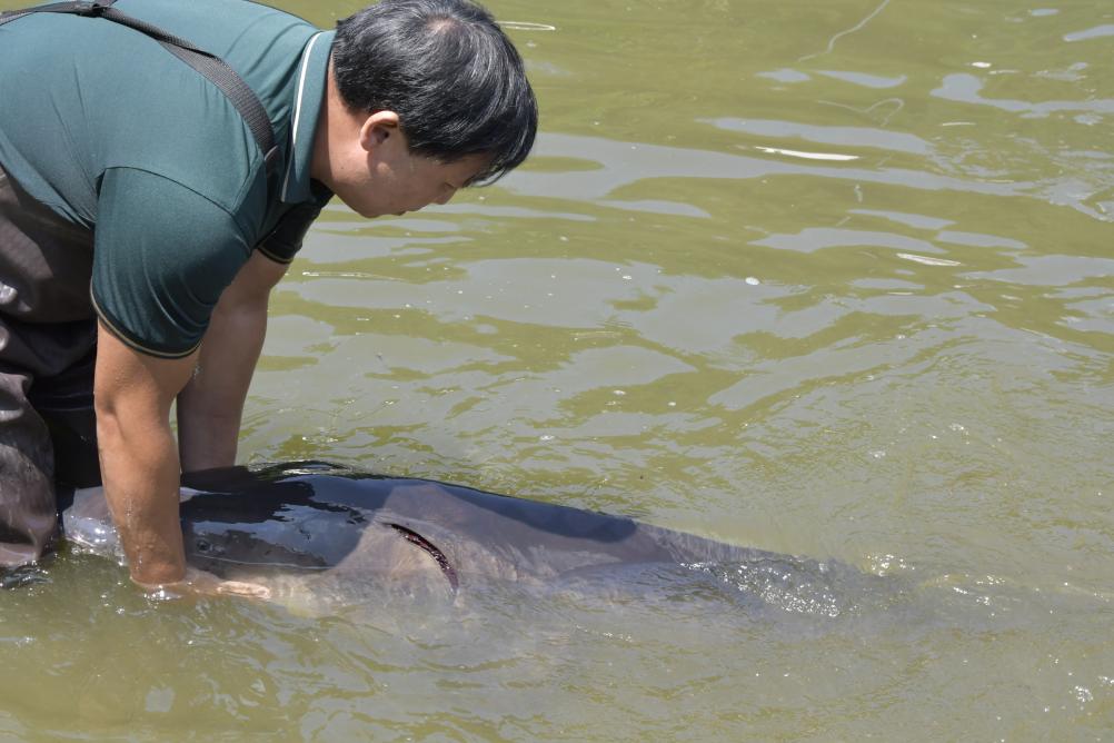 “你看这条中华鲟,肥美度非常好,它今年要产卵的。”从小在长江边长大的周亮,对于长江中的长江鲟、中华鲟、胭脂鱼等水中精灵,有着难以割舍的情感。