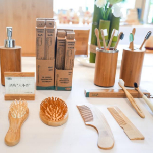 报福镇是安吉县首个“以竹代塑”入民宿的试点乡镇。记者看到,当地不少民宿在使用竹灯具、竹地板、竹家具之余,还提供竹牙刷、竹梳子等一次性洗漱用品,以及竹碗筷、竹纤维毛巾、竹纤维拖鞋等日常用品。