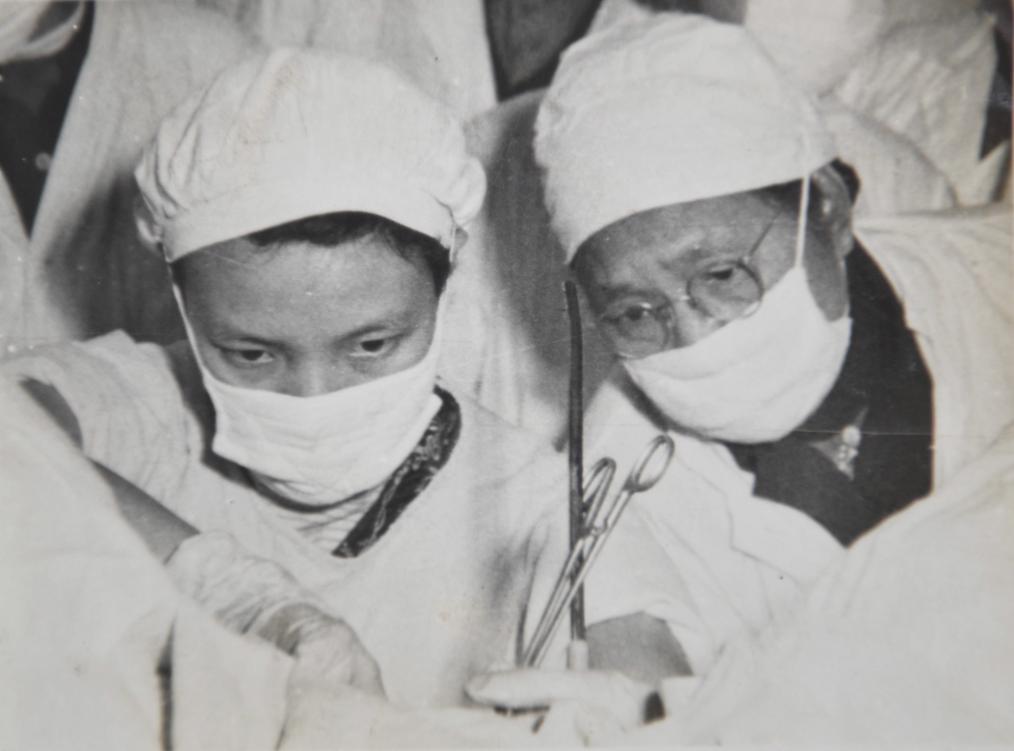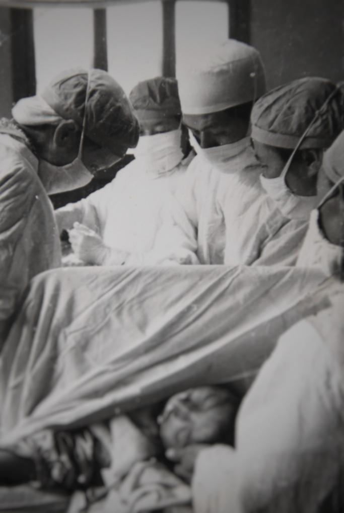 20世纪70年代,乐以成(右)指导谢蜀祥做手术。