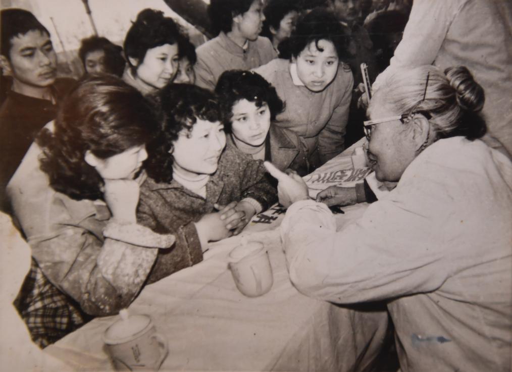 20世纪70年代,乐以成(左三)带领青年医生为病人诊断。