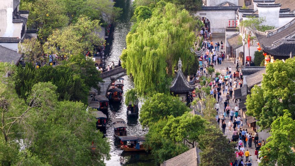 2024年“五一”假期,各地游客在浙江省湖州市南浔古镇景区游览。(沈勇强 摄)