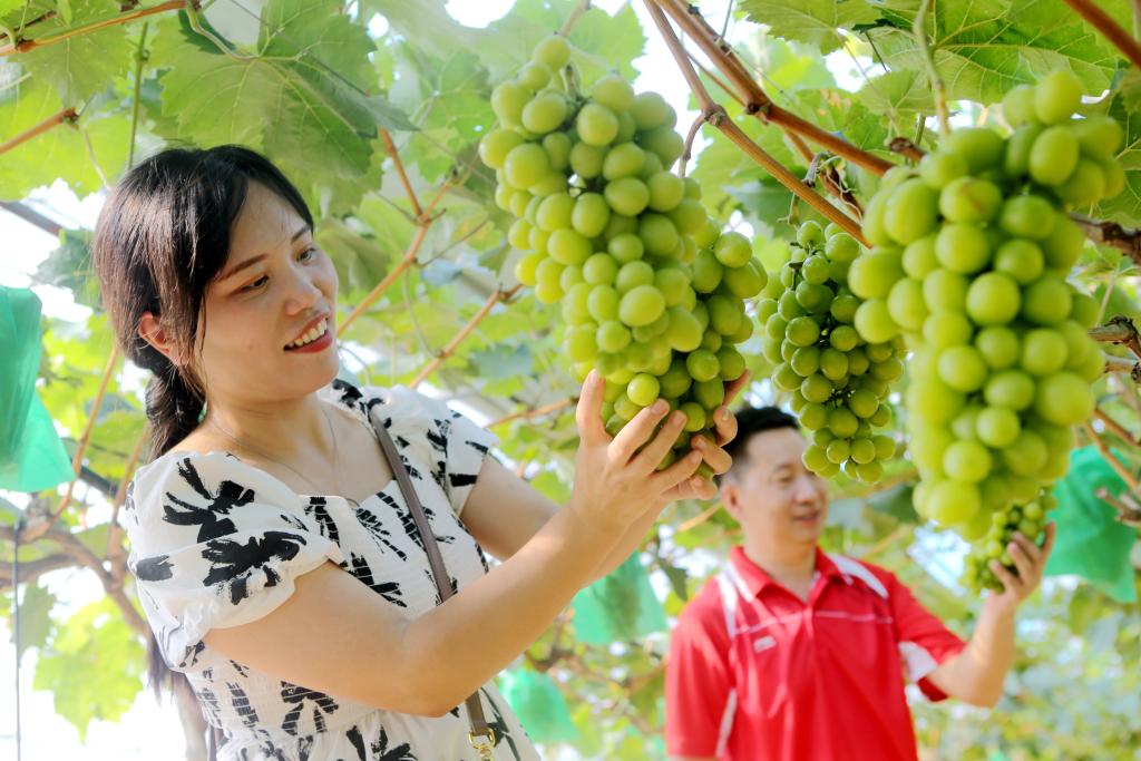 “今年的脆桃又红又大,葡萄香甜多汁。这些绿色、安全的水果,我们吃着也放心。”游客朱峰说,采摘不仅能让大家亲近自然,还能帮助孩子了解一些农业知识。