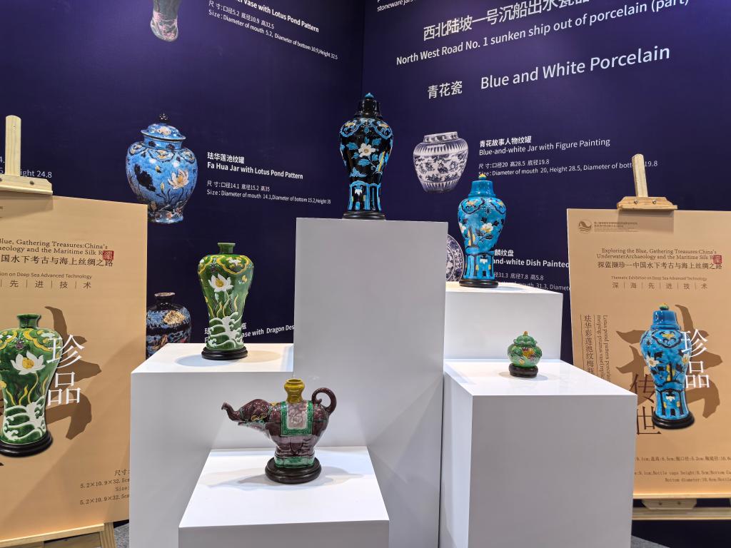 近日在海南省三亚崖州湾科技城,一场“跨界”展览别具一格。珐华彩莲池纹梅瓶、象形执壶等精美文物的复制品,与“探索一号”“探索二号”科考船和“深海勇士”号载人潜水器模型一同现身深海先进技术暨深海(南海)沉船考古主题展,共同讲述深海技术和水下考古跨界融合故事。