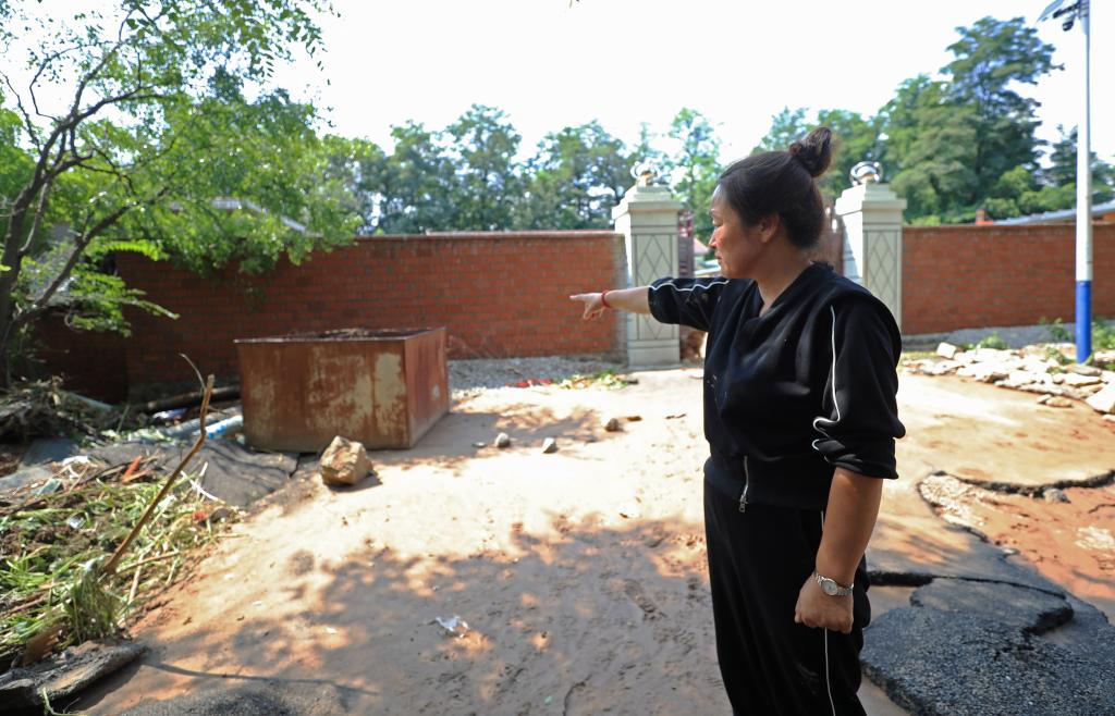 8月21日,在建昌县黑山科乡小台子村,村妇联干部臧春英讲述李清学牺牲经过。新华社记者 杨青 摄