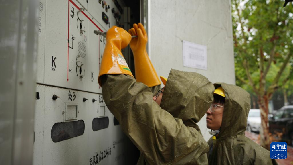 8月26日,国网天津城西公司李七庄供电服务中心员工在进行倒闸操作,恢复线路供电。新华社发
