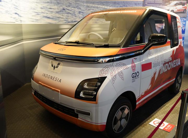 ↑ 2022年,五菱首款新能源全球车Air ev(右舵版)在印尼正式下线,并成为二十国集团(G20)领导人第十七次峰会官方用车。