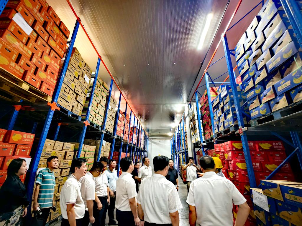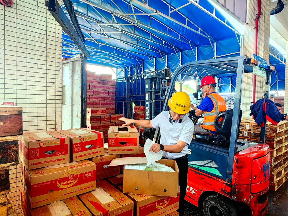 8月22日,农批中心工作人员正在入库青香蕉。(新华社记者苏晓洲 摄)