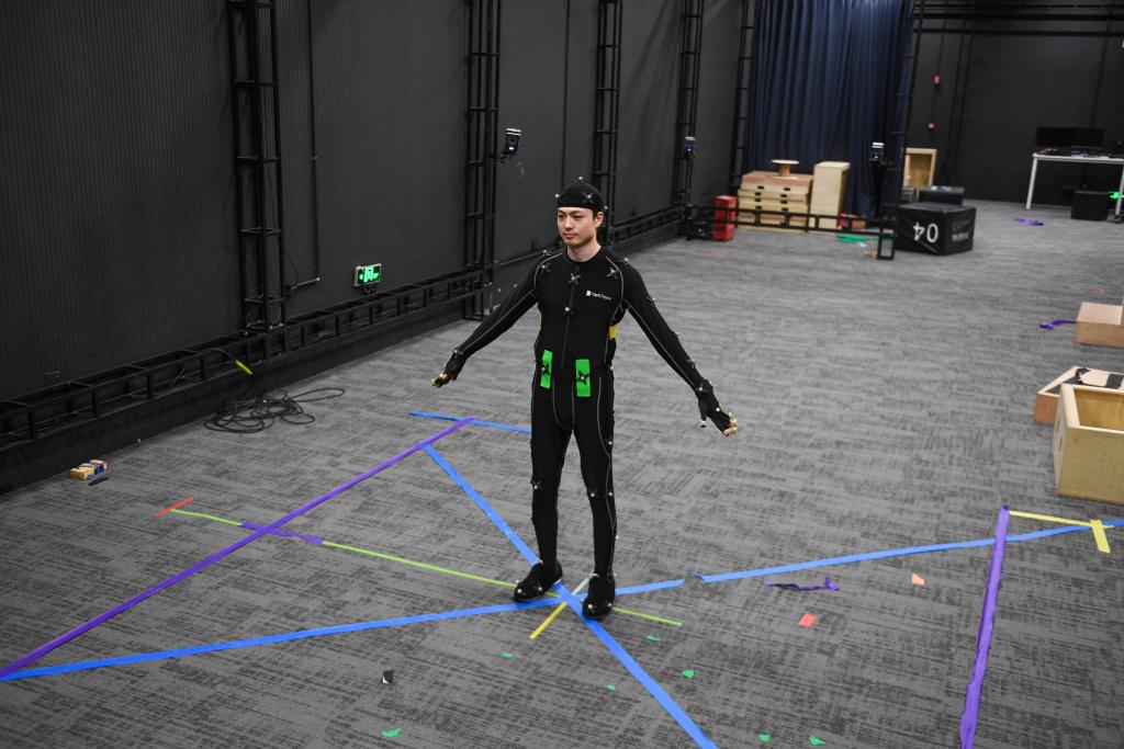 8月28日,动作捕捉师对殷凯的表演进行指导。