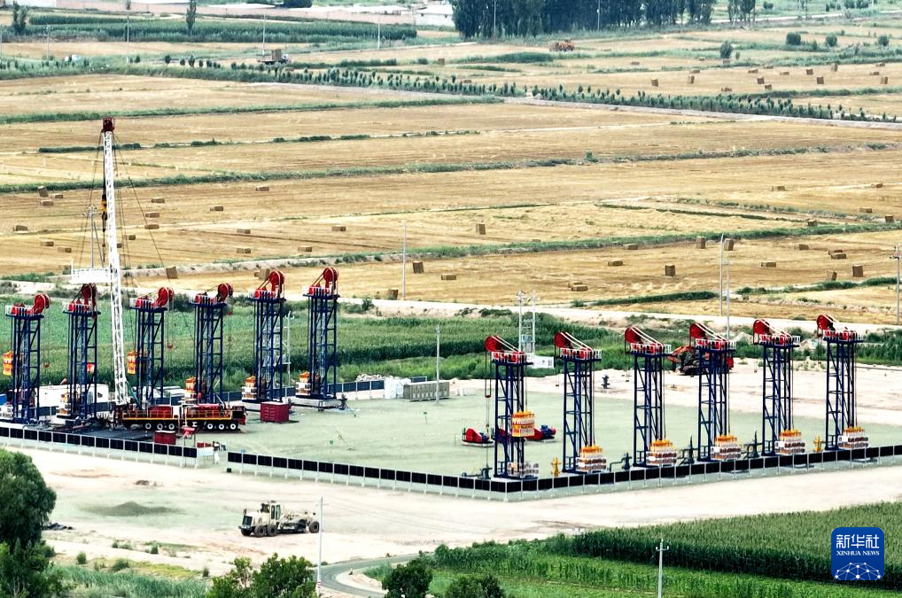 8月24日在内蒙古自治区巴彦淖尔市临河区拍摄的华北油田公司巴彦油田钻井(无人机照片)。新华社记者 李云平 摄