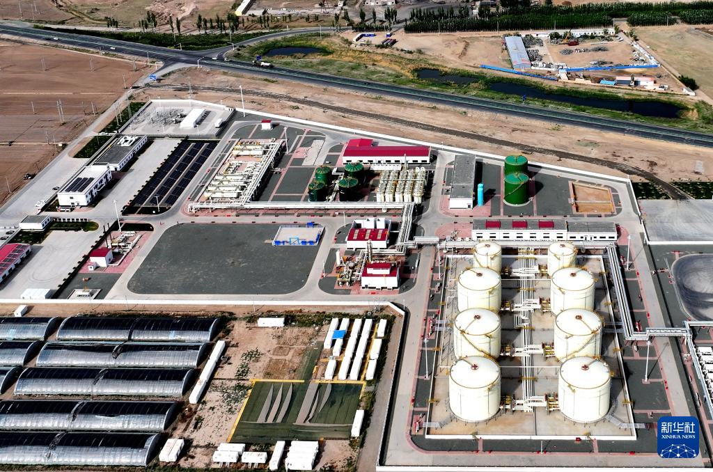 5月31日在内蒙古自治区巴彦淖尔市临河区拍摄的华北油田公司巴彦油田联合站(无人机照片)。新华社记者 李云平 摄