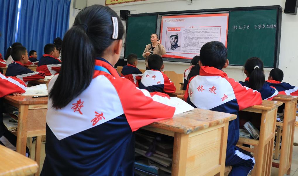 3日是中国人民抗日战争暨世界反法西斯战争胜利79周年纪念日,米林市小学五年级一班上了一堂以“铭记历史 弘扬抗战精神”为主题的课。课堂上,曾洁带着孩子们重温英雄故事,学习抗战精神。