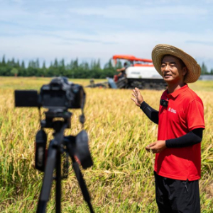 7月19日,在南县麻河口镇官正垸村,毛竹青在录制分享农业经验的视频。新华社记者 陈思汗 摄