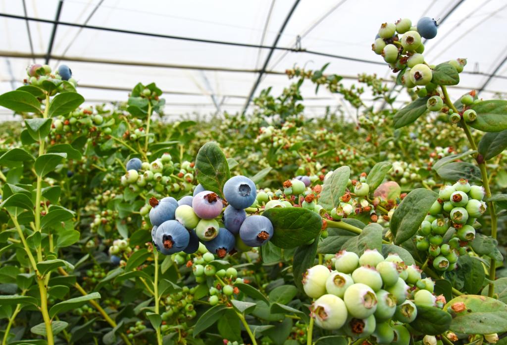 云南省红河州蒙自市草坝镇一处蓝莓种植大棚里的蓝莓。新华社记者熊轩昂 摄