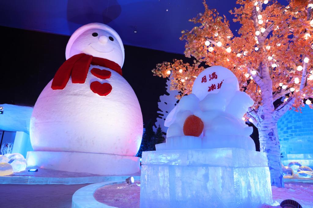 “第一次看到用冰做的玉兔和月饼,太有创意了!”近日,甘肃游客冯宇被哈尔滨冰雪大世界梦幻冰雪馆中一座以“玉兔望月”为主题的冰雕所吸引。冰雕由一轮圆月、两只惟妙惟肖的望月玉兔和一枚月饼组成,取“天上圆月满,人间庆团圆”之意。冯宇说,她感受到了“尔滨”浓浓的节日氛围。