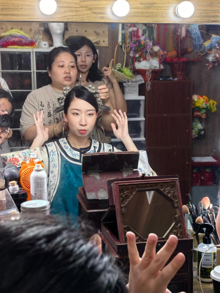 “这种妆造称为‘三条簪’,是已经沉寂了近百年的福州女性传统妆造。”汉服妆造师黄秋辉最早开始着手复原“三条簪”妆造,并尝试将之与当下热门的变装旅拍相结合。在她看来,游客前来体验“三条簪”,不仅是出于对这种独特妆造的喜爱,也是对“三条簪”背后优秀传统文化的认同。