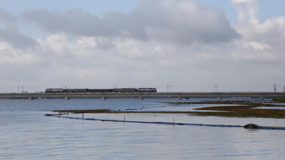 首趟检测列车驶过沪苏湖高铁青浦特大桥元荡湖段。(中国铁路上海局集团有限公司供图)