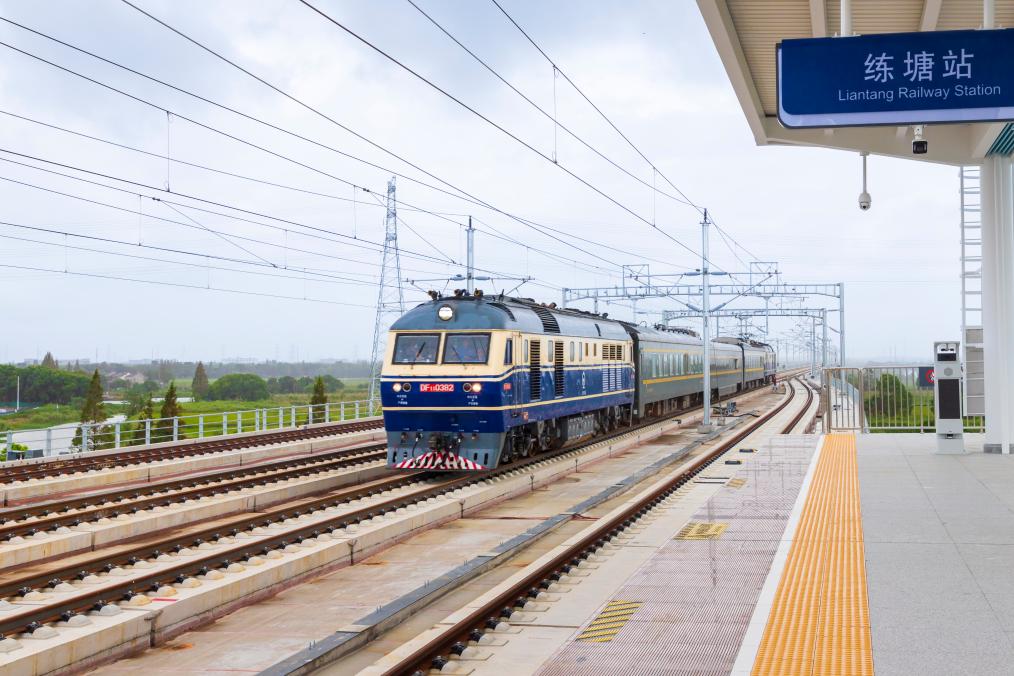 首趟检测列车驶过沪苏湖高铁练塘站。(中国铁路上海局集团有限公司供图)