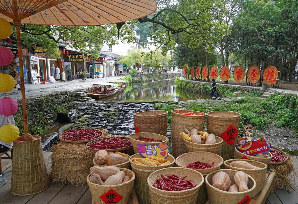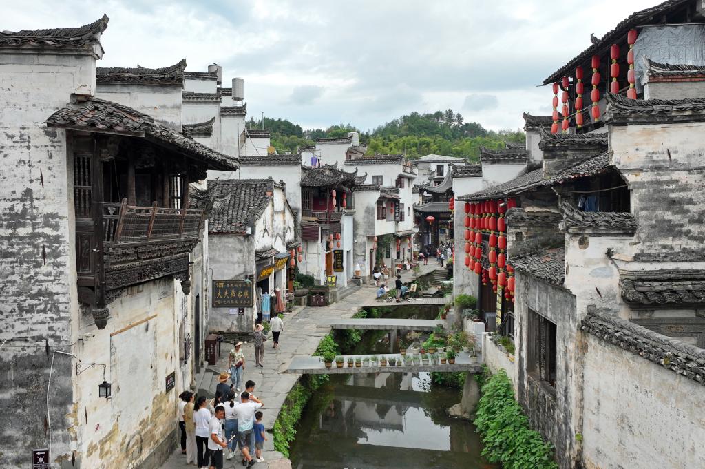 游客在江西省婺源县李坑景区游览(9月19日摄)。