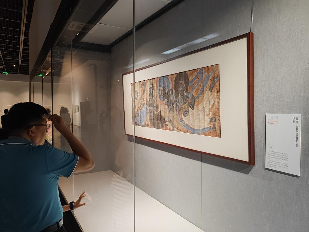 观众在欣赏常书鸿临摹的莫高窟《飞天图》。新华社记者 冯源 摄