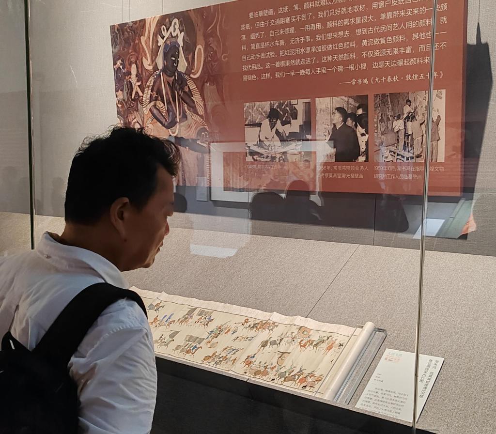 观众在欣赏常书鸿临摹的莫高窟《张议潮统军出行图》。新华社记者 冯源 摄