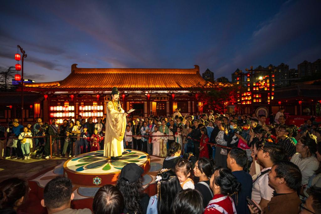 “大家身穿华服,游走在‘盛唐气象’之中,不时还有‘贺知章’‘上官婉儿’等华服大巡游的扮演者擦肩而过,我仿佛感觉自己‘穿越’了。”来自北京的郭女士说,历史和文化被这样具象化地感知,这种身临其境的体验是前所未有的。