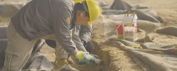 整整7万方封土,足以盖满30多个标准泳池,不能使用大型机械,团队就用各类铲子、锄头,分探方一点点掘进。