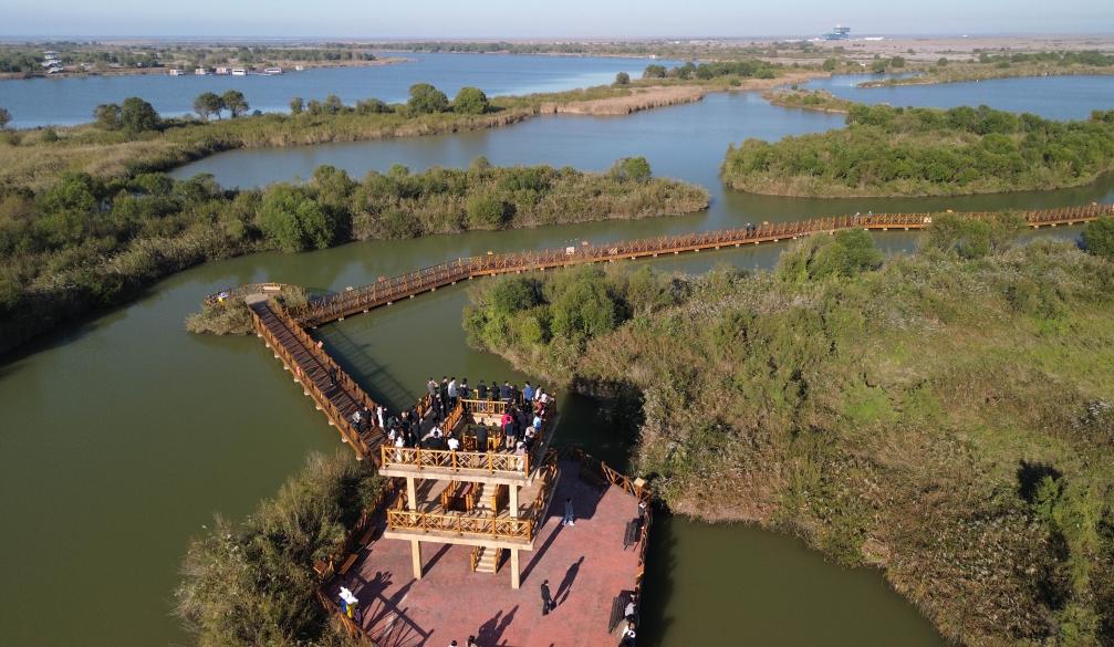 偎黄河,挽渤海,1983年建市的山东省东营市依托得天独厚的湿地资源,近年来实施湿地保护、湿地修复、湿地入城等工程,持续加强湿地与城市互动,2018年东营市获评全球首批“国际湿地城市”。如今的东营,市区水面遍布,清风湖、秋月湖、悦来湖、天鹅湖等点缀其间,辖区内湿地面积4567平方公里,湿地率41.58%,一幅“蓝绿交织、清新明亮,湿地在城中、城在湿地中”的生态惠民画卷,正在黄河三角洲上徐徐铺展。