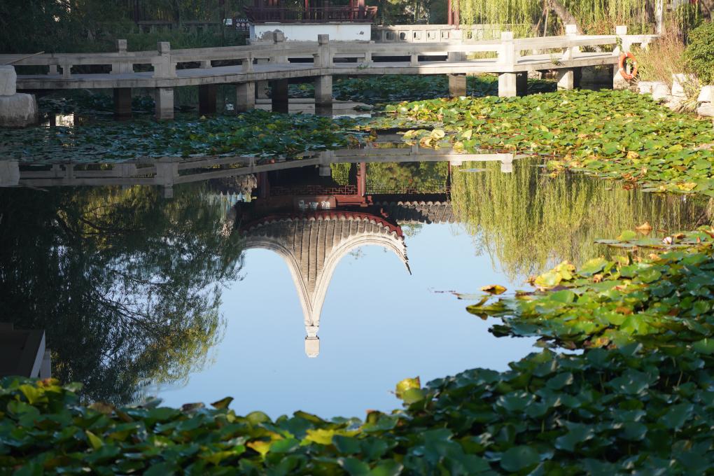 这是10月11日拍摄的东营市明月湖湿地一角。