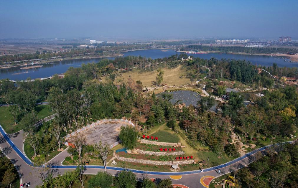 这是位于东营市东营区的泮水公园(10月12日摄,无人机照片)。