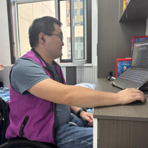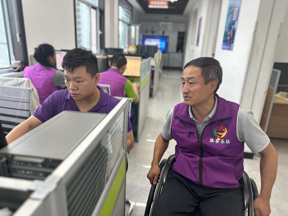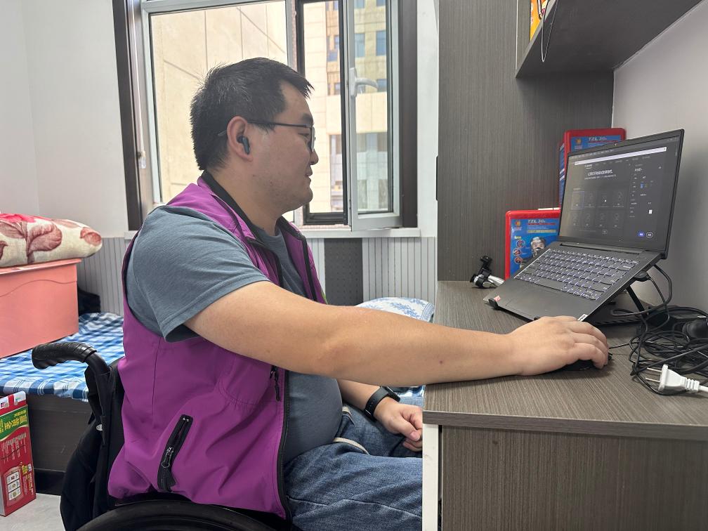 在位于甘肃省张掖市甘州区的残疾人网络培训就业基地,29岁的王鹏操控着轮椅从宿舍出发,穿越宽敞明亮的走廊抵达办公区。打开电脑,戴上耳机,他开始了作为互联网客服忙碌的一天。而几年前,他还难以想象自己作为残疾人能过上如此充实的生活。