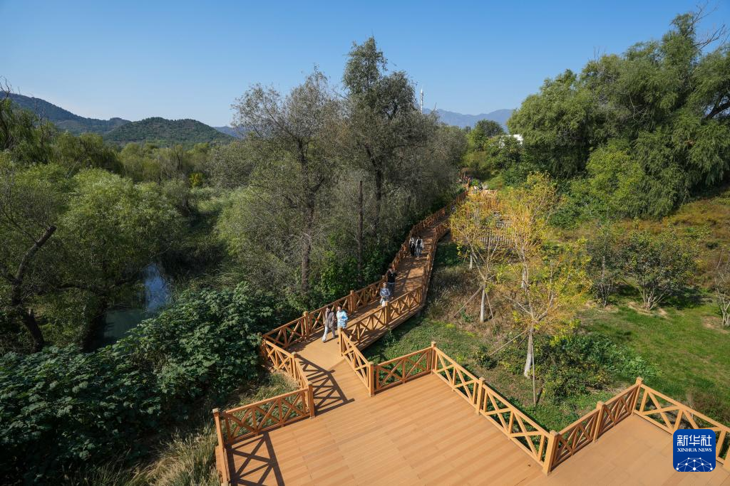 10月15日,游客在牛口峪湿地参观游览。新华社记者 鞠焕宗 摄