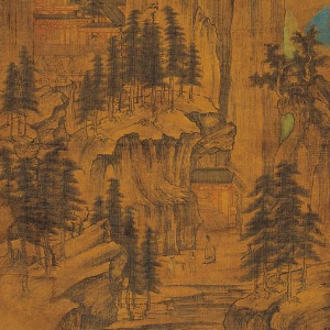 《山弈候约图》为辽代早期作品,彼时,中原的山水画已登上了成熟的巅峰。可以看出,《山弈候约图》中山水画面貌接近于当时的中原山水画风,唯其笔墨尚显朴拙。