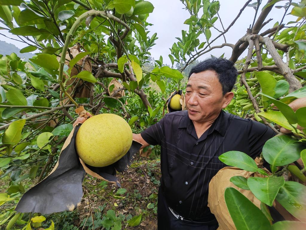 岑巩县出产的思州柚颜色金黄,味道酸甜适中,肉不粘皮,是国家地理标志保护产品。刘寿军介绍,岑巩县民丰果树种植专业合作社社员共有265户,共种植思州柚3.2万亩,其中挂果面积1.8万余亩。