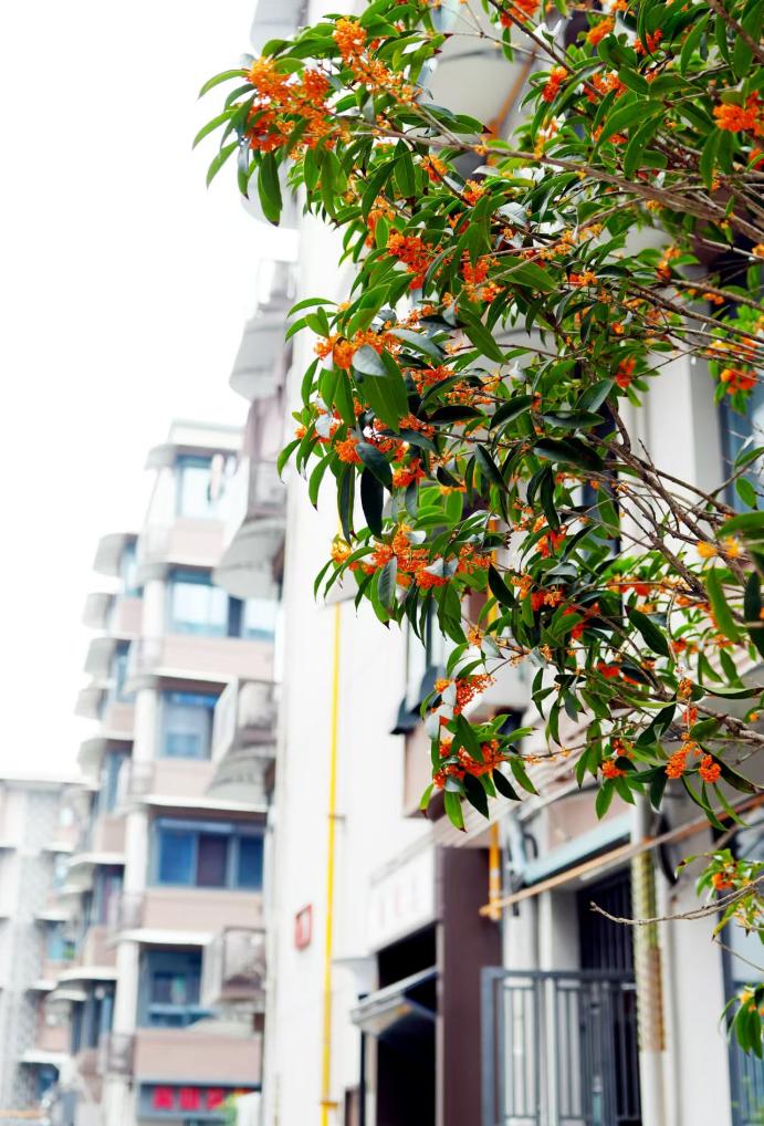 深秋时节,改造后的工人村社区桂花飘香。(杨仕成 摄)