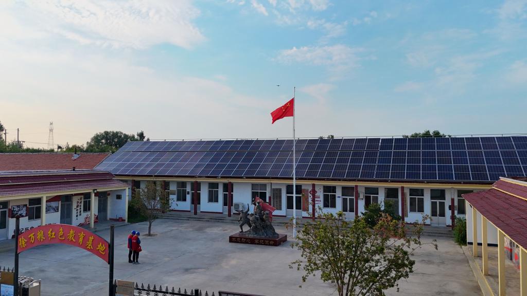 在滨州市沾化区泊头镇徐万粮村,村委办公室屋顶上的光伏板整齐排列。新华社发