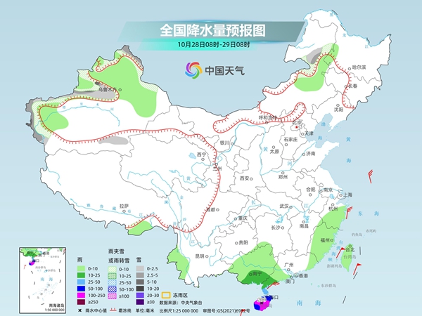 今起三天,海南仍有强风雨天气,当地需加强防范,警惕山体滑坡、泥石流等次生灾害。10月30日至31日,西北东部、华北西部一带将有大范围雨雪天气,需保持关注。