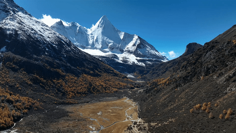 近日,位于四川省甘孜藏族自治州的稻城亚丁景区秋韵正浓,吸引众多游客前来游览。