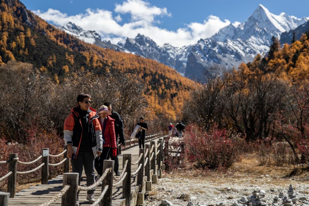 10月31日,游客在四川省甘孜藏族自治州稻城亚丁景区内游览。新华社记者 胥冰洁 摄
