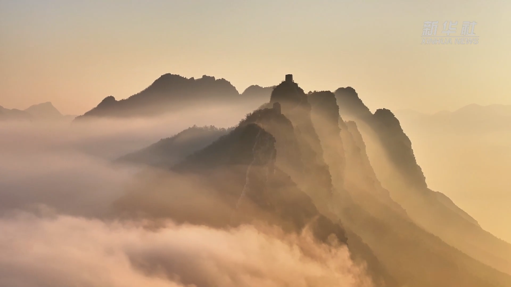 近日,在河北承德滦平县金山岭长城出现云海景观,日出时刻与云海同框,景色美如画卷。