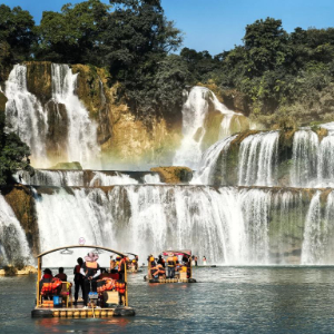 山水靖西是很多河流的发源地,从靖西“鹅泉”流出的一江春水流经越南,在广西大新县的德天村复入,这就是中越两国的界河归春河,河流在德天村由于山势落差形成的德天瀑布,如银河倒挂,吸引着大批游客前来观光。