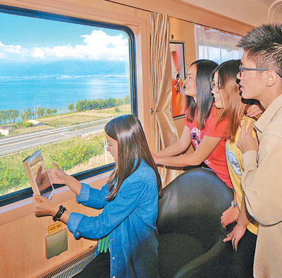 列车经过洱海时,旅客拍照打卡。杨紫轩摄