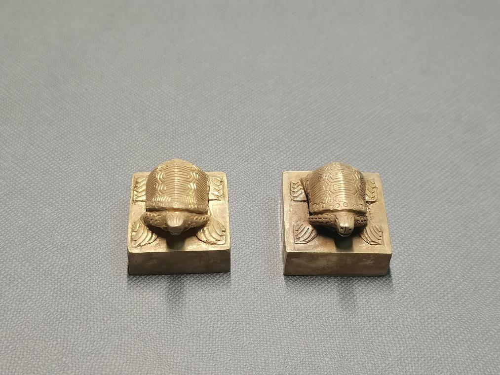 张昭墓出土的两方龟纽金印。(南京市考古研究院供图)