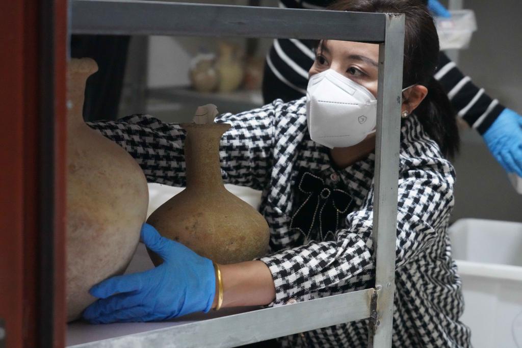 11月12日,工作人员正在进行现场文物交接清点工作。(受访者供图)