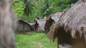 在海南岛热带雨林中的(早期)黎族村落里
