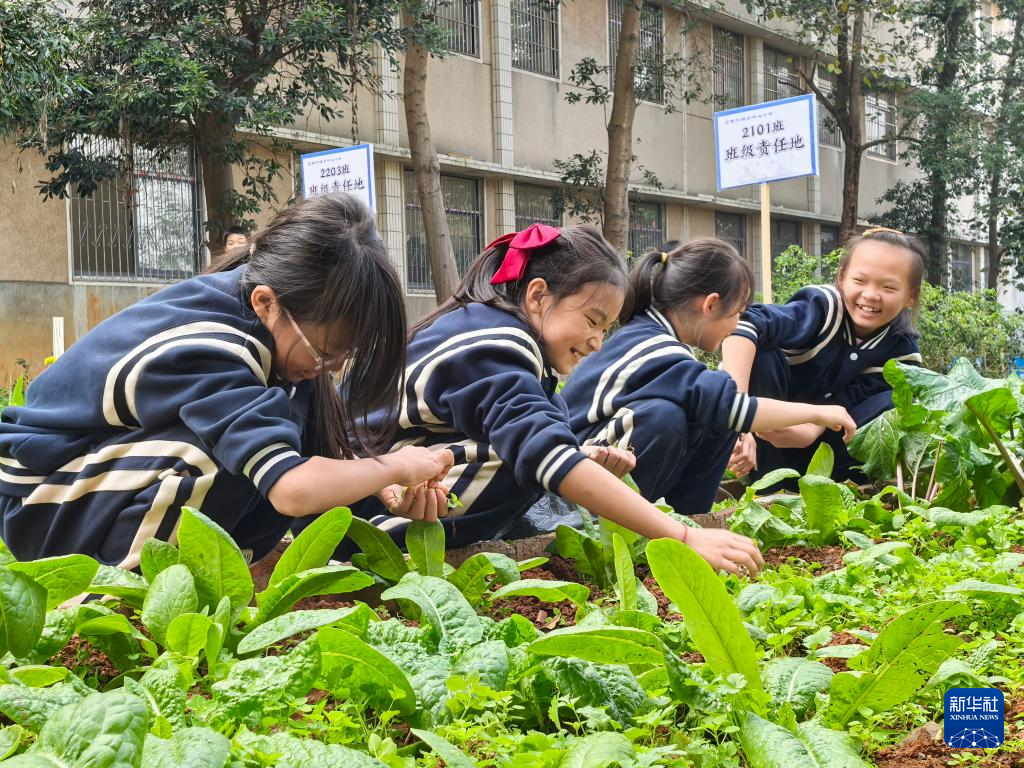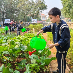 9月初,四年级的谢莫湉湉和班上同学第一次种白菜。一连几日,学生们每天早晚轮流施肥、浇水,很快菜根就烂了。“当时大家心里很不好受,努力白费了。老师教育我们要有耐心,不能气馁。”谢莫湉湉说,“后来我们及时补种,按老师说的规律浇水,白菜健康生长啦。”