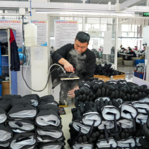 小雪节气临近,山东济宁嘉祥县的新高地创新智慧产业园里,一片片布料经过缝纫、熨烫、充绒、质检等流程,变成一双双滑雪手套。在打包装箱后,它们即将销往远方。